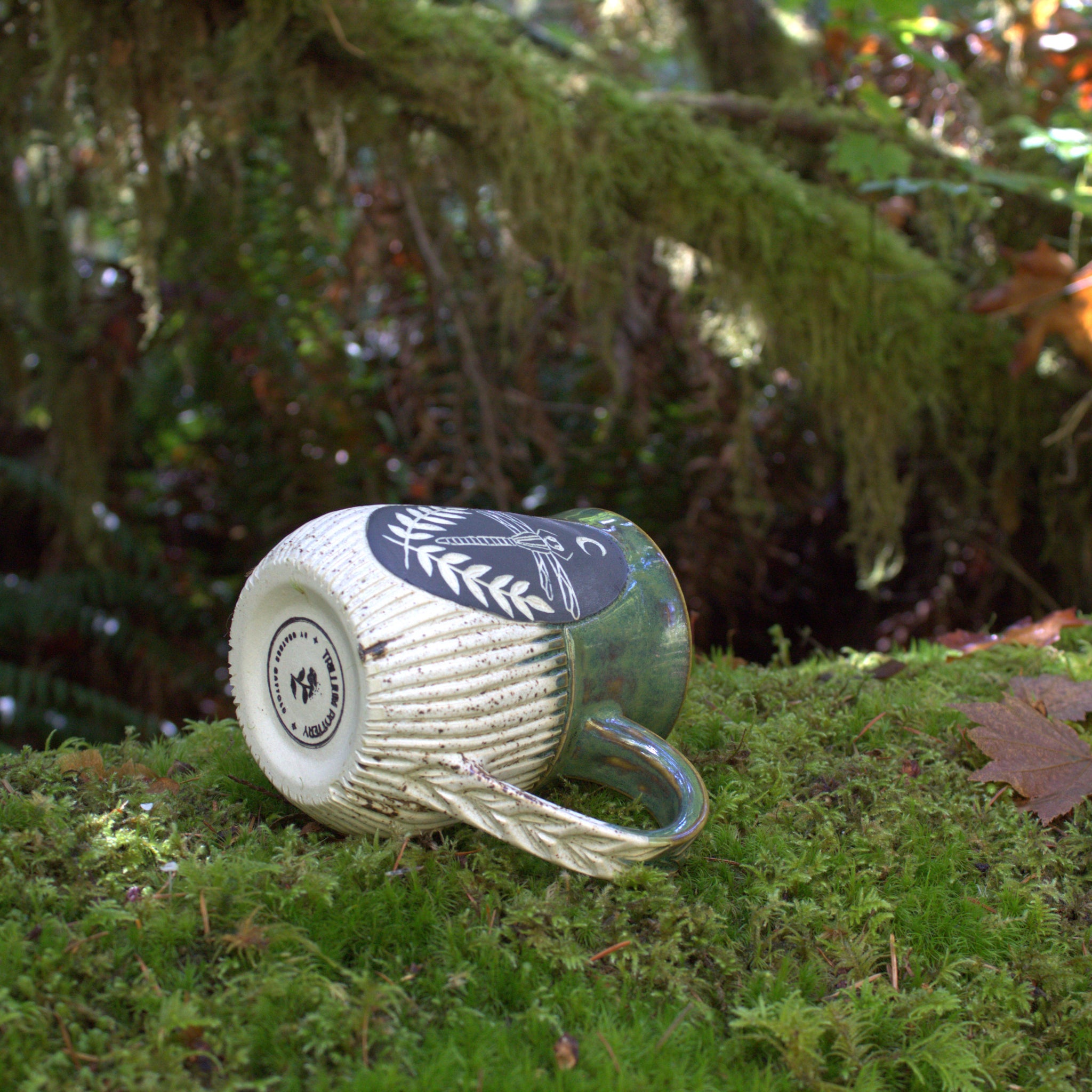 Elevate your morning coffee or tea ritual with this completely unique and one-of-a-kind ceramic mug with hand-carved designs.