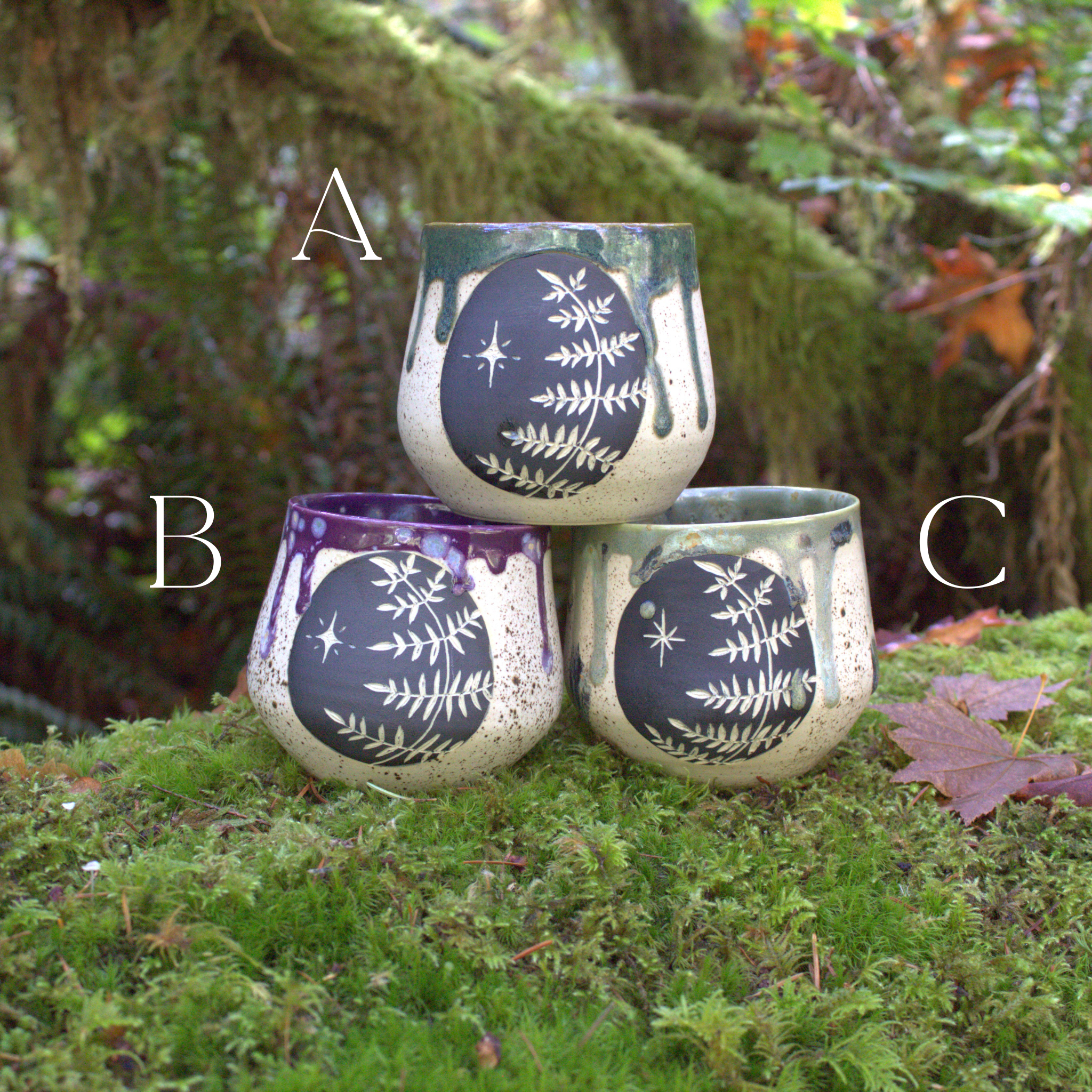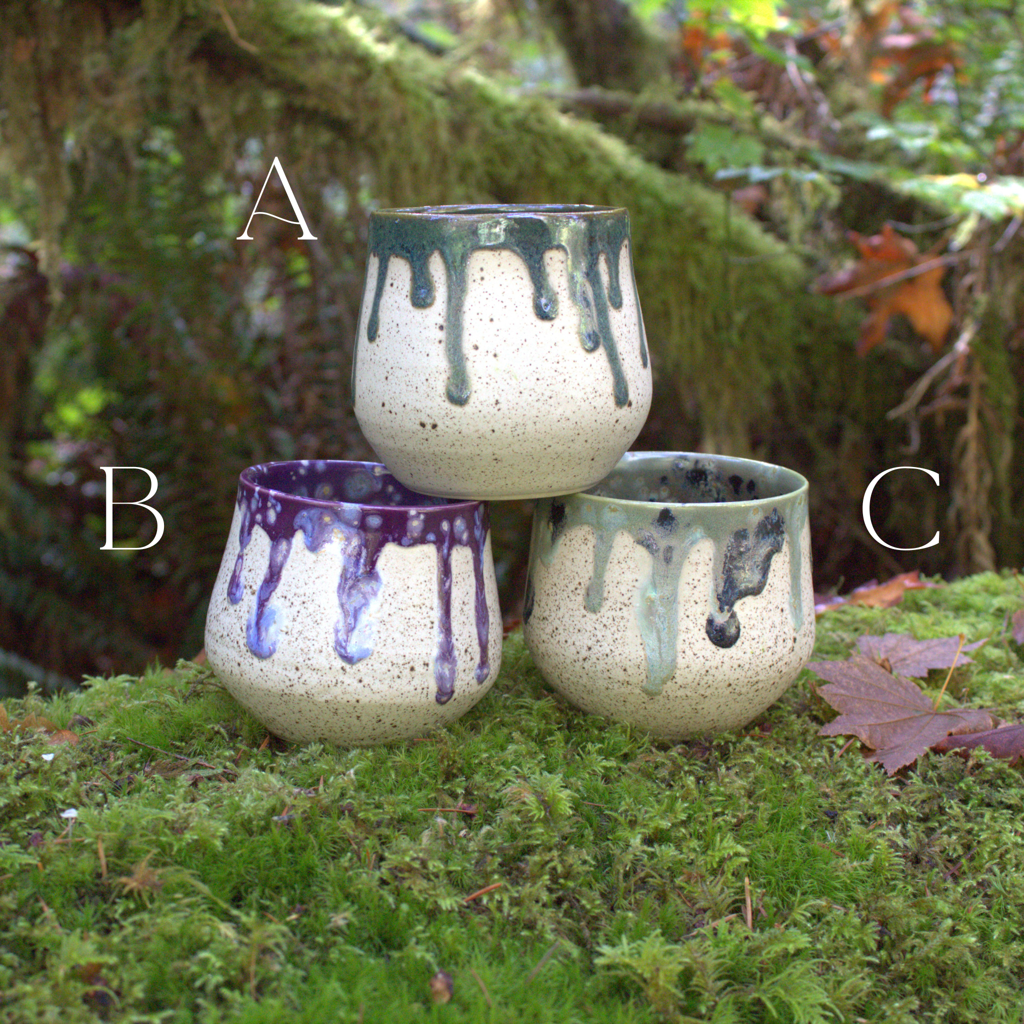 Enjoy your libations in a unique, hand-carved, ceramic tumbler! Each tumbler is sold separately. The letters correspond to the photos to help you decide which to purchase!