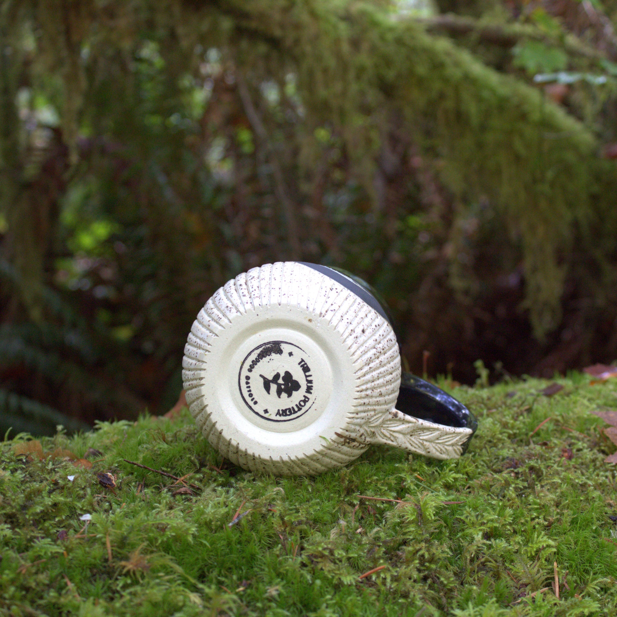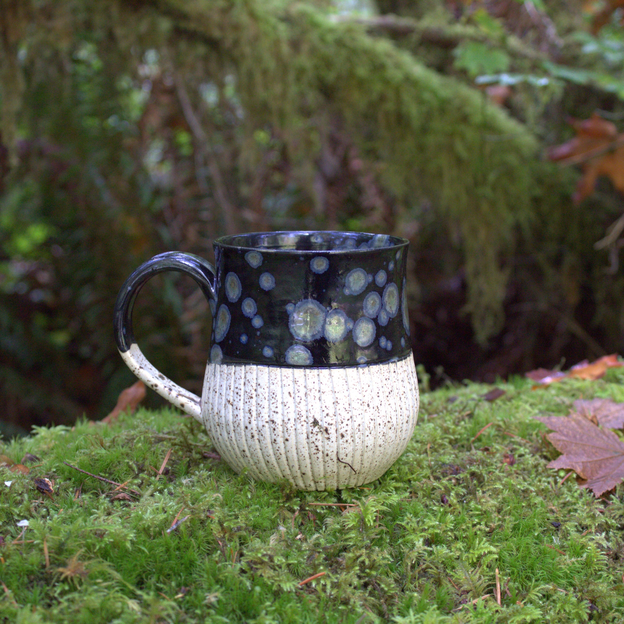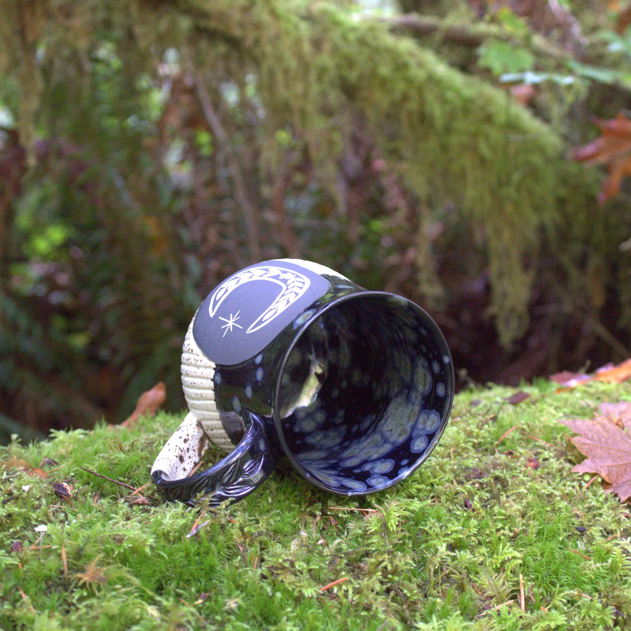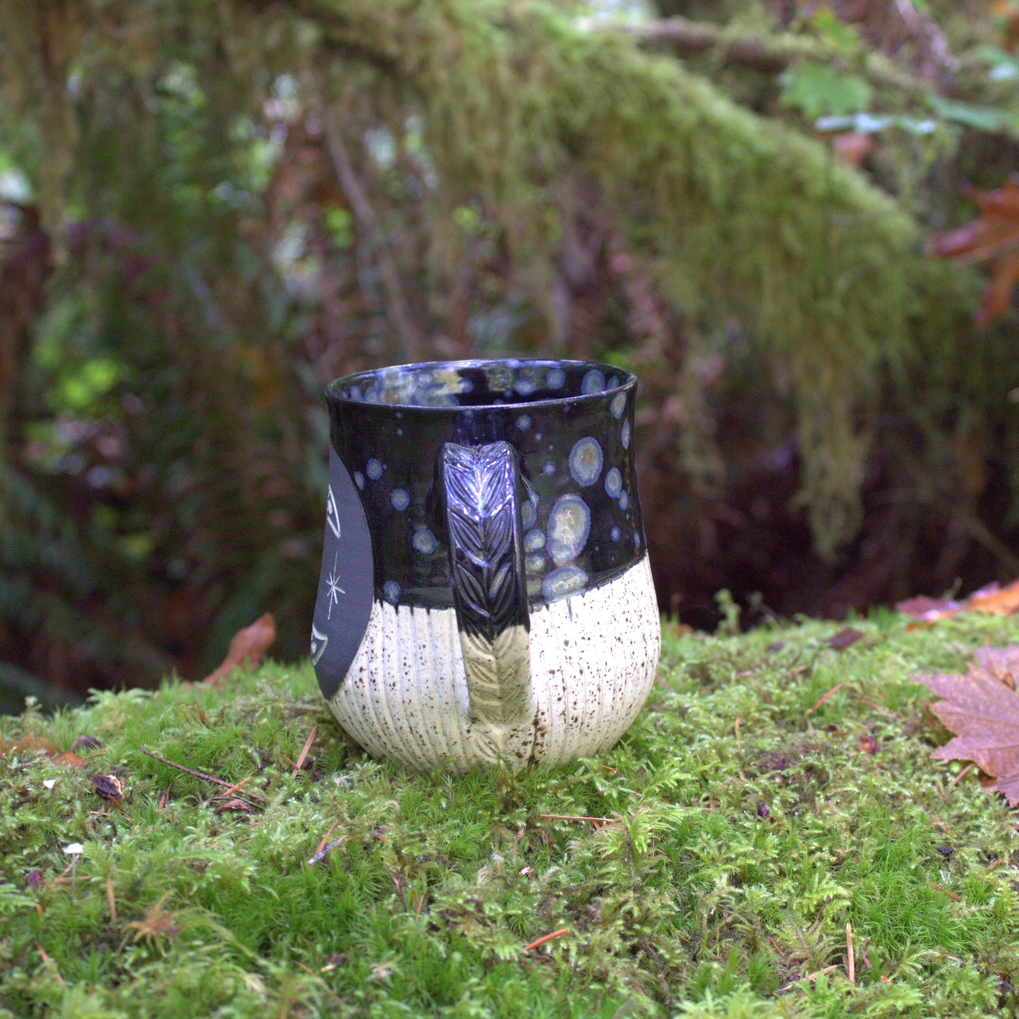 Elevate your morning coffee or tea ritual with this completely unique and one-of-a-kind ceramic mug with hand-carved designs.