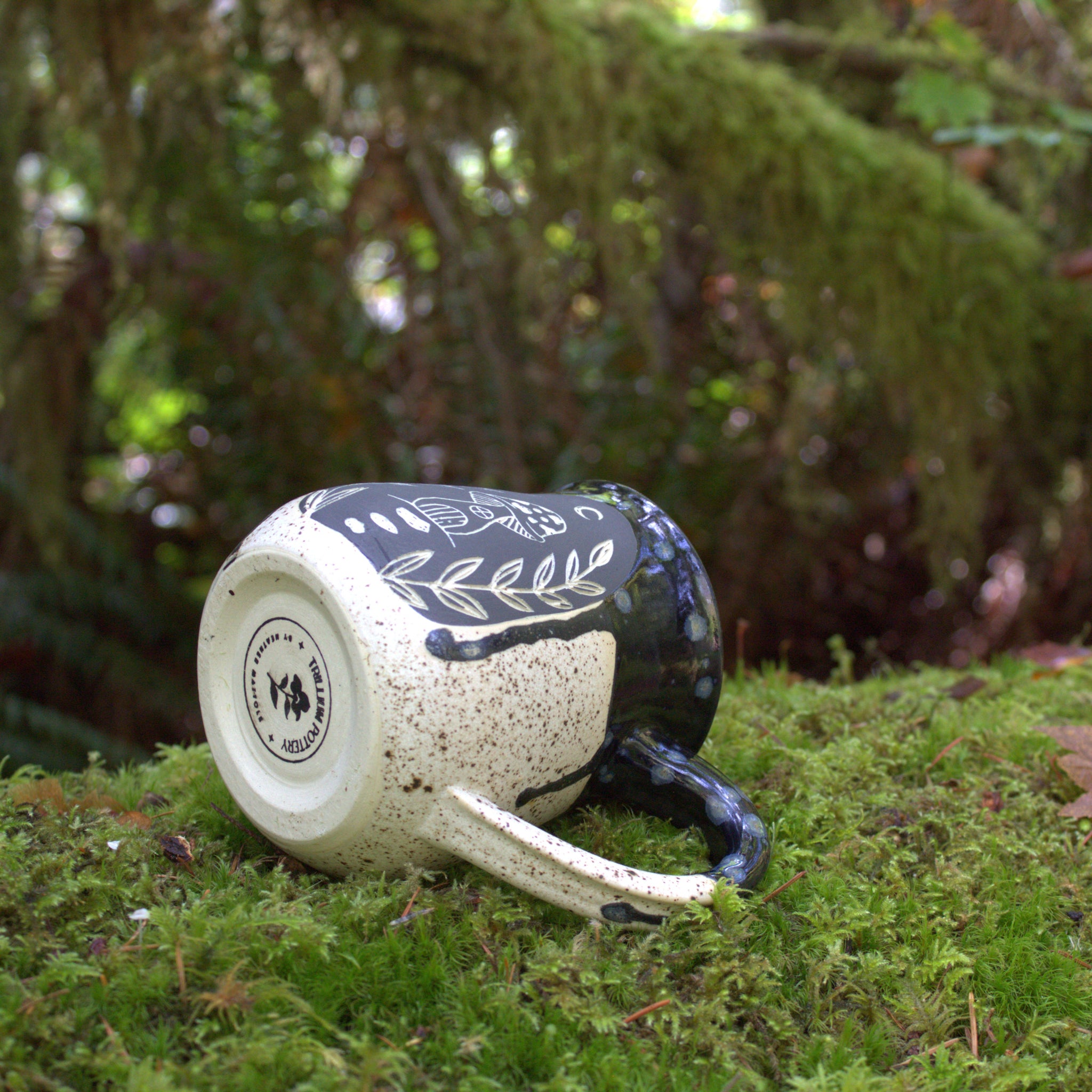 Elevate your morning coffee or tea ritual with this completely unique and one-of-a-kind ceramic mug with hand-carved designs.